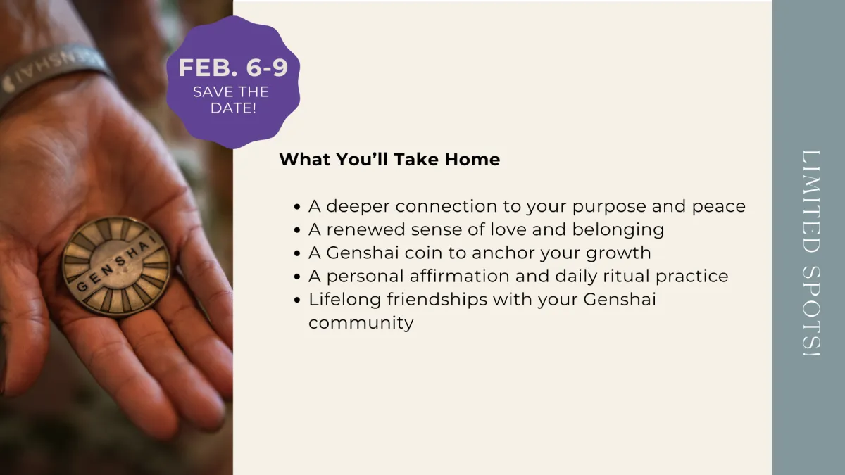 Join us this February and step fully into the Genshai way of being, where love begins within and ripples out to the world. 🌱